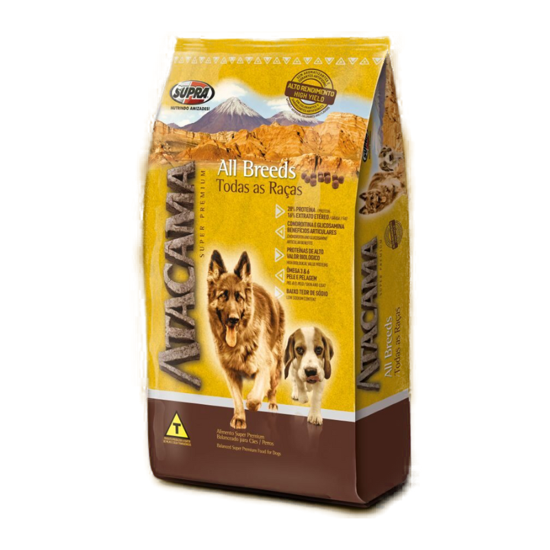 Alimento para perro Atacama esta formulado para perros de alto rendimiento, alto requerimientos nutricionales y todas las razas. Contiene cinco fuentes de proteína animal de alto valor biológico -carne, pollo, pescado, cerdo y huevo, apta para perros con paladares exigentes. La condroitina y la glucosamina ofrecen beneficios para las articulaciones. Omega 3 y 6 para la salud de la piel y el pelaje.